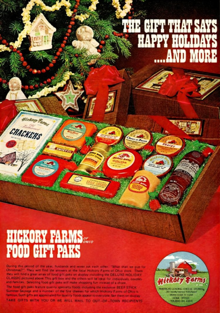 The dwindling pervasiveness of the Hickory Farms meat and cheese gift pak* is alarming. You used to be able to find this shit everywhere here in the Midwest.